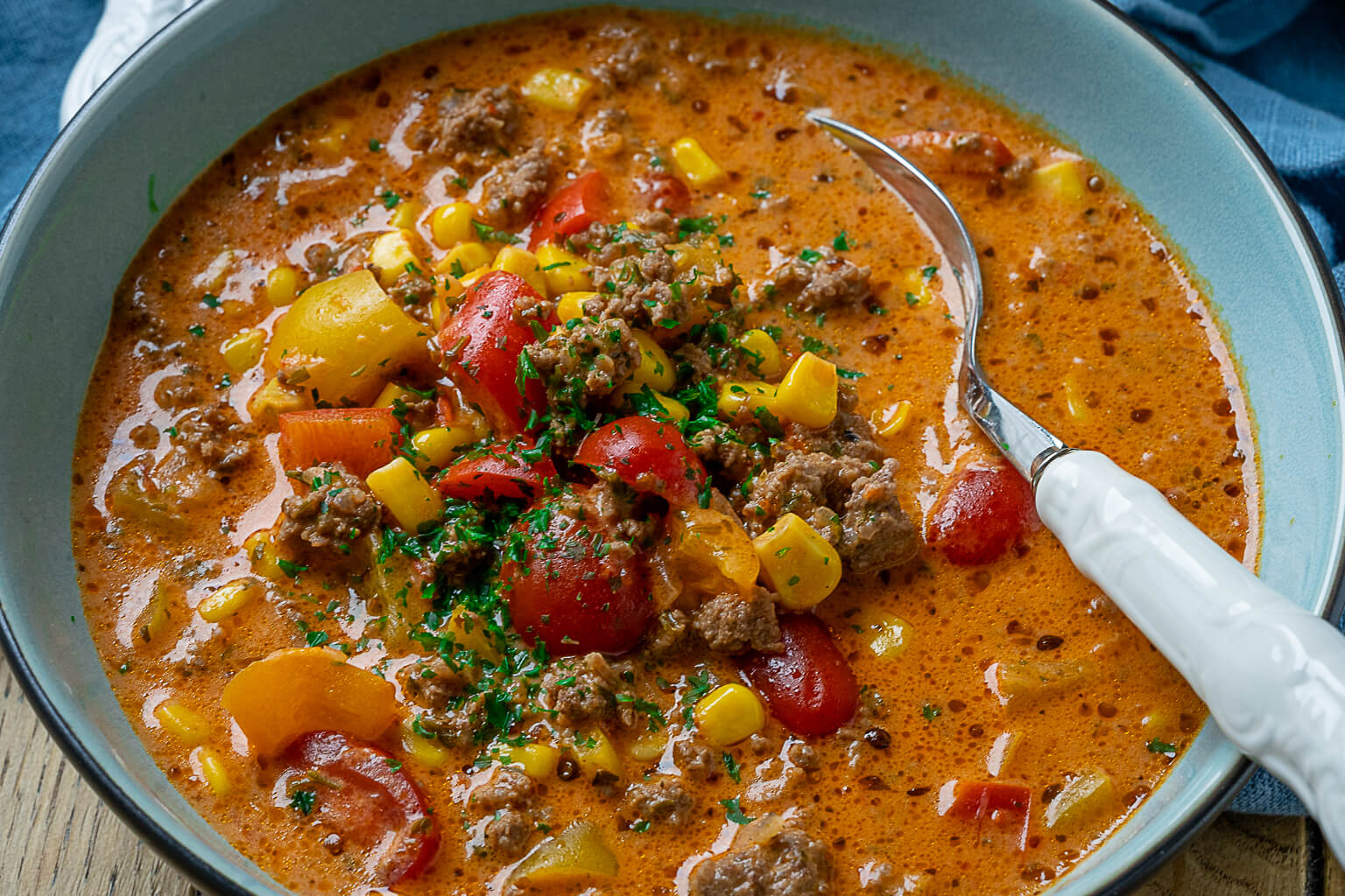 Diese Pizzasuppe ist schnell gemacht und schmeckt der ganzen Familie. Mit Hackfleisch, Paprika, Mais und viel Käse ist sie in unter 20 Minuten fertig und passt perfekt zu frischem Brot oder Baguette. Zum Rezept für Pizzasuppe hier klicken.