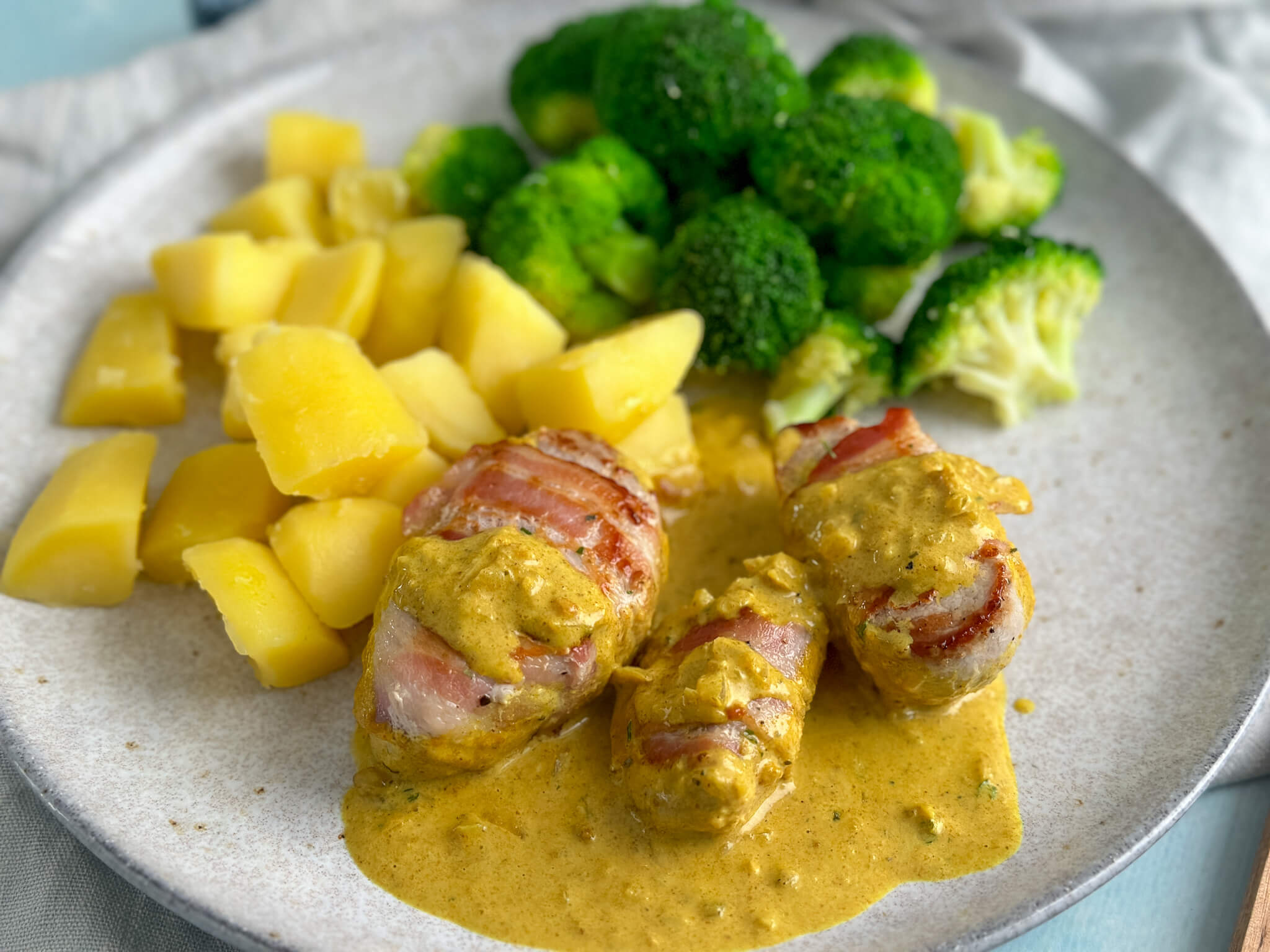 Schweinemedaillons im Speckmantel mit Currysoße – einfach köstlich