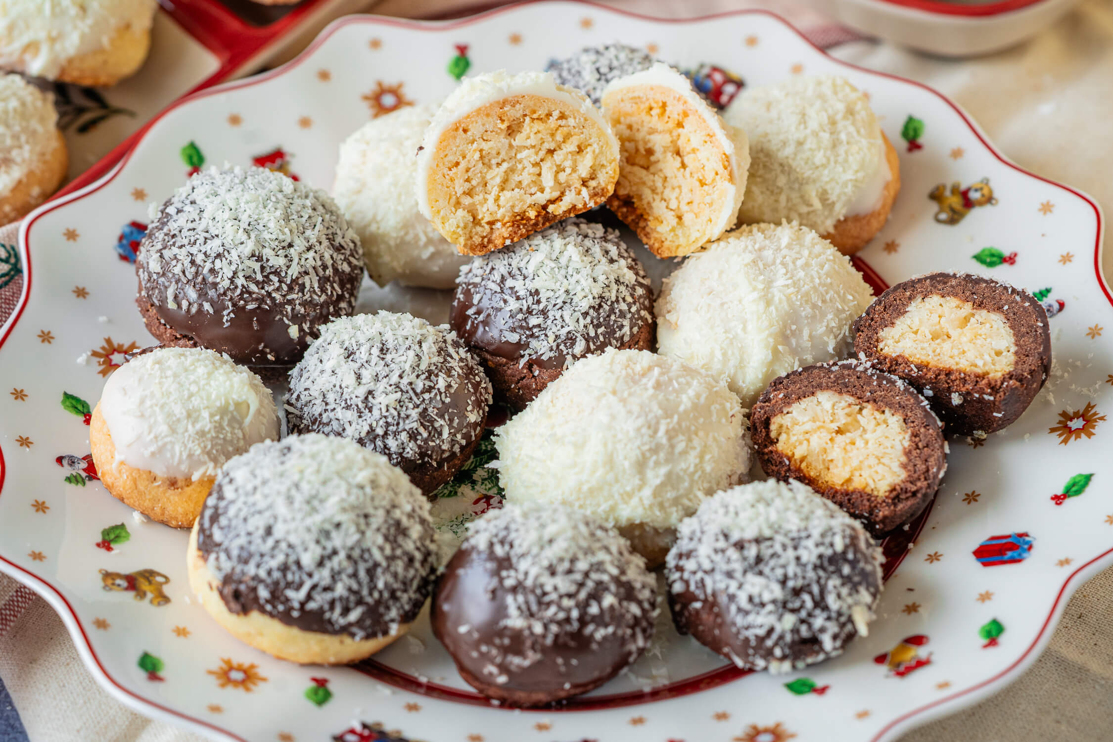 Diese kleinen Kokoskugeln sind schnell gemacht und bestehen aus einer feinen Kokosmasse, die du zu Kugeln formst. Nach dem Formen werden sie in Kokosraspeln gewälzt. Ein einfacher, aber sehr klassischer süßer Snack, der perfekt zur Weihnachtszeit passt. Zum Rezept für Kokos‑Kugeln hier klicken.