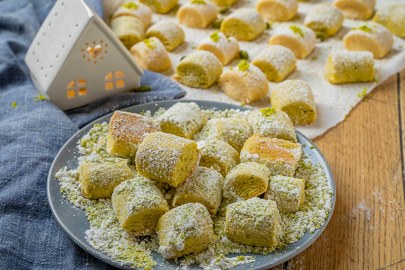 Zartes Buttergebäck trifft auf Pistazienkern – diese kleinen Kekse sind einfach zu formen und schmecken herrlich nussig. Ausrollen, schneiden, backen und in Puderzucker wälzen – so leicht gelingt Genuss pur. Zum Rezept für Pistazien‑Traumstücke hier klicken.