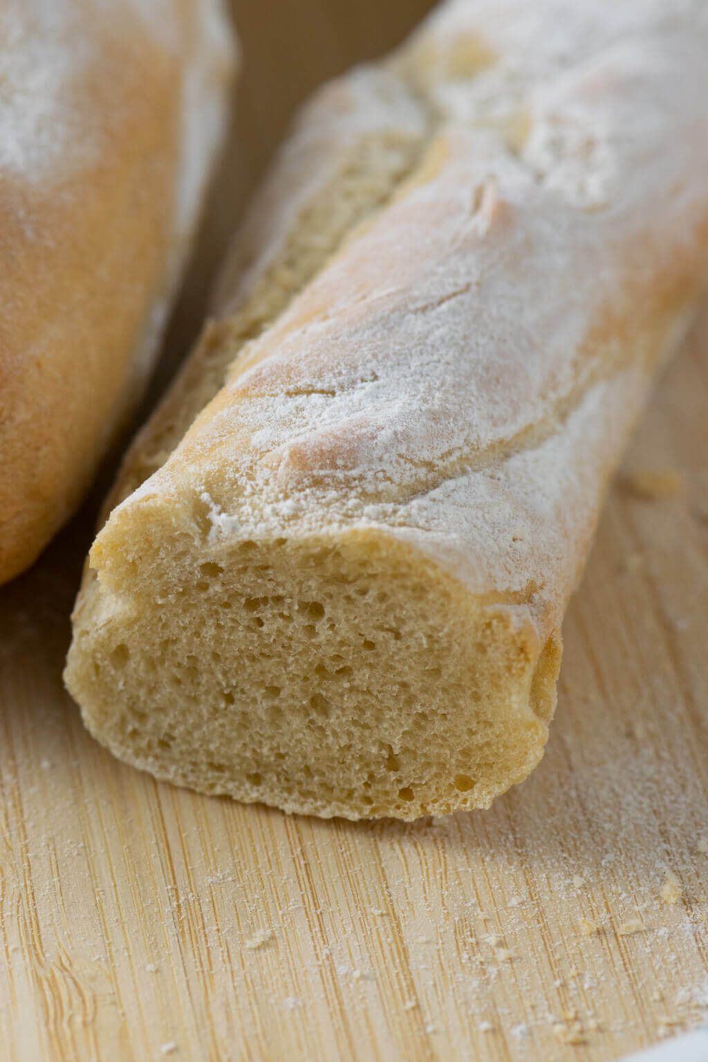 Ich bin vom Ergebnis der knusprigen Baguettes total begeistert! Ich habe, weil ich mich immer etwas durchprobiere, unterschiedlich dicke Baguettes gebacken und finde die schmalen total super zum Belegen mit beispielsweise spanischer Salami und etwas salziger Butter.