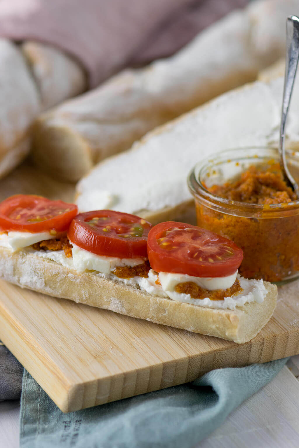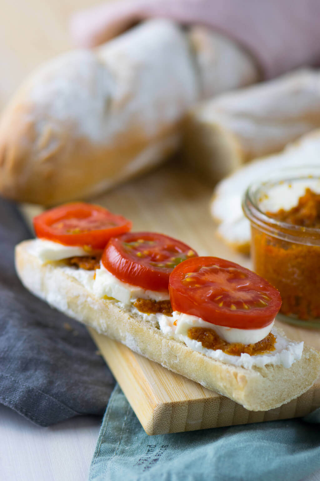 Knuspriges Baguette – mit Tomatenpesto, Mozzarella & Tomaten