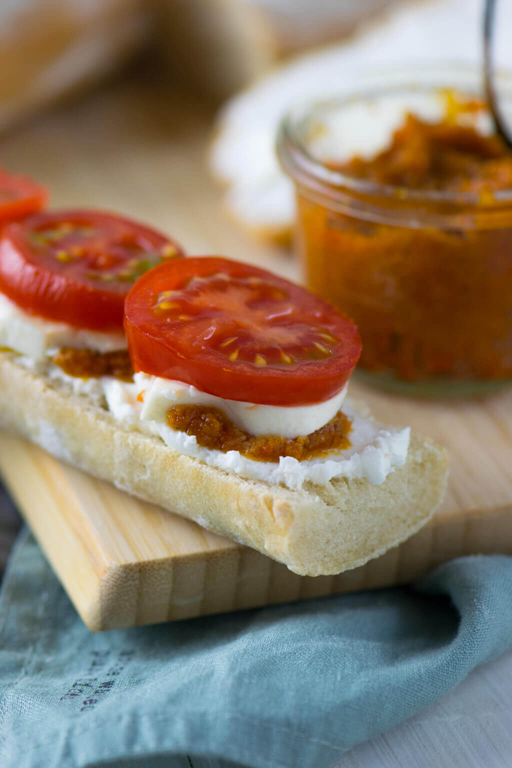 Dazu habe ich nahezu immer Lust auf Mozzarella und Tomaten. Kein Wunder, haben wir das erste Mal seit so vielen Jahren einen echten Sommer – sogar hier bei uns im Norden Deutschlands. In diesem Jahr gab es soviel selbstgemachtes Pesto wie in keinem Jahr zuvor… auch wenn ich bisher überwiegend das grüne Basilikum Pesto zu Mozzarella serviert habe, konnte ich in diesem Jahr endlich auch das erste Mal Pesto Rosso aus getrockneten Tomaten zubereiten. Yummy! Rotes Pesto ist wirklich so lecker und aromatisch und wie das Basilikum Pesto in nur wenigen Minuten zubereitet.